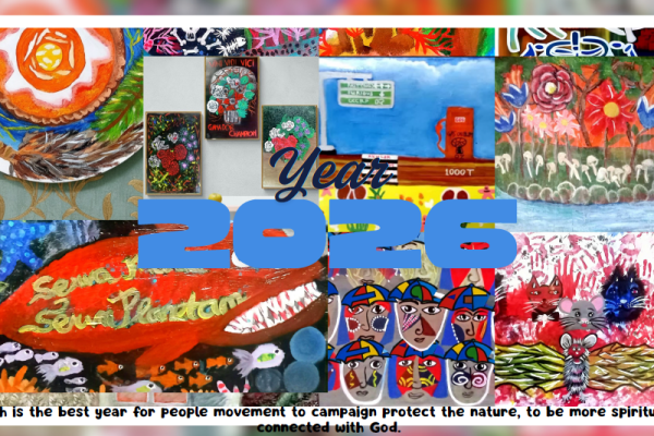 Protect Our Children! 2025 Acrylic on Canvass 50 x 90 cm Our children’s faces with umbrella. As parents, we have to be their home where they can feel safe. Support them not only financially, but also getting involve in their social life. As long as we can sacrifice and train them with skills. By: Ratih…
