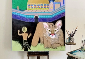 Our children will be telling their children how Palestine was liberated from the battle of Al Aqso flood. But at this painting fisabilillah, a boy and a silver lion palestine go to the Dome of the Rock in Al-Quds to conquer then be the Guardians of this masjid. A celebration is held to start the save place for everyone. We hope someday we will be there, Insya Allah 🤲🏻🥰💪🏻